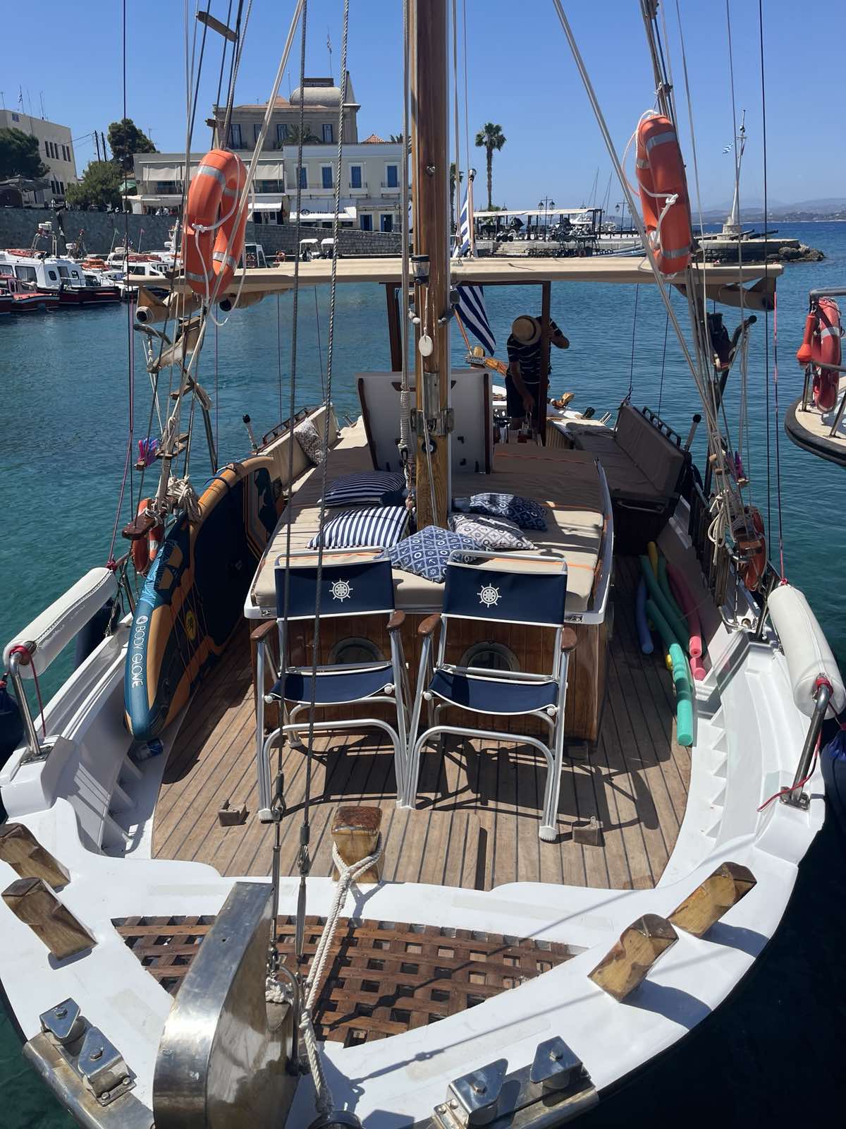 Katerina traditional wooden boat 9.5 meters length, built in 1992 on Spetses island, is fully equippend for daily cruises with a capacity of 12 people.